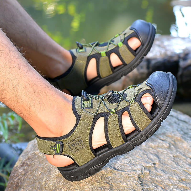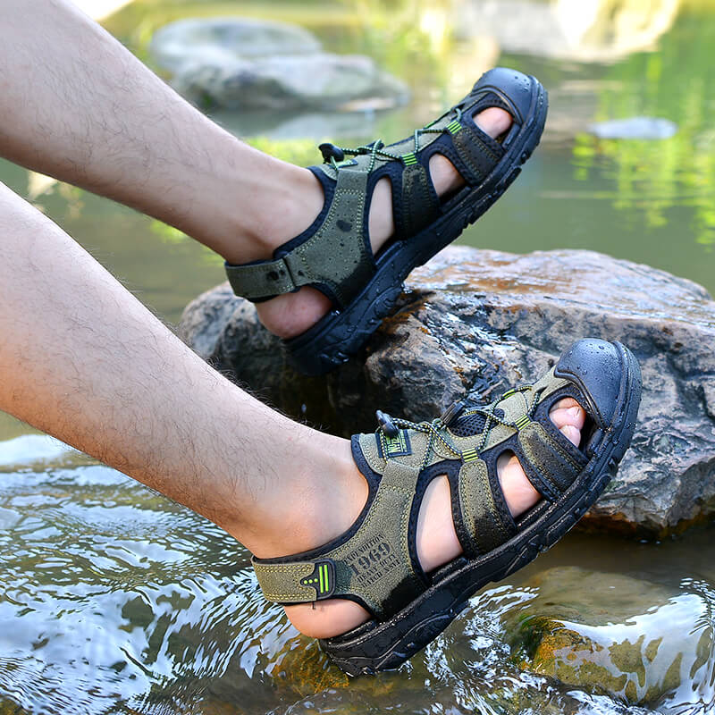 Sandals or slippers: Men closed toe sandals has anti-collision rubber toe cap to keep your feet safe and comfortable outdoor.